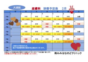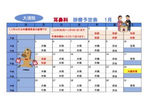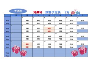 1月、2月の診療予定表です。
